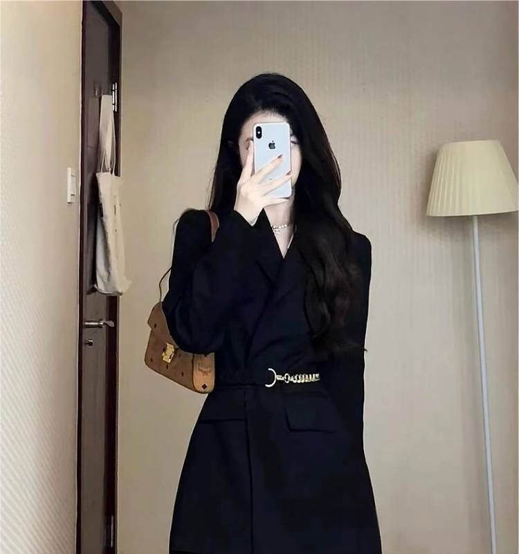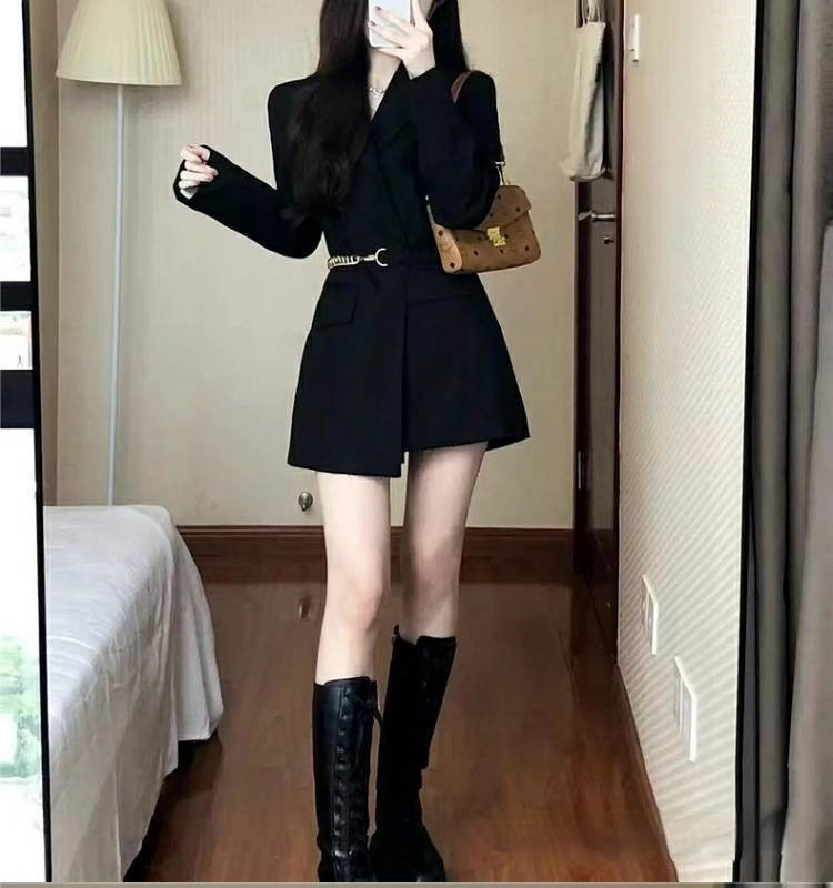 Womens Versatile Black Suit Dress For Fashion